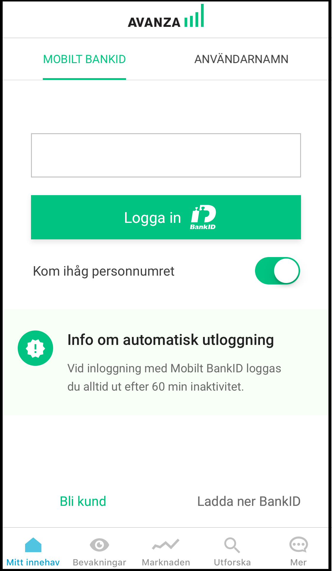 När jag efter att ha angett personnummer klickar på logga in kommer inloggningstransaktionen upp även på andra telefoner och i Avanzas fall även på en dator. De använder alltså inte autostarttoken trots att de är på samma enhet.
